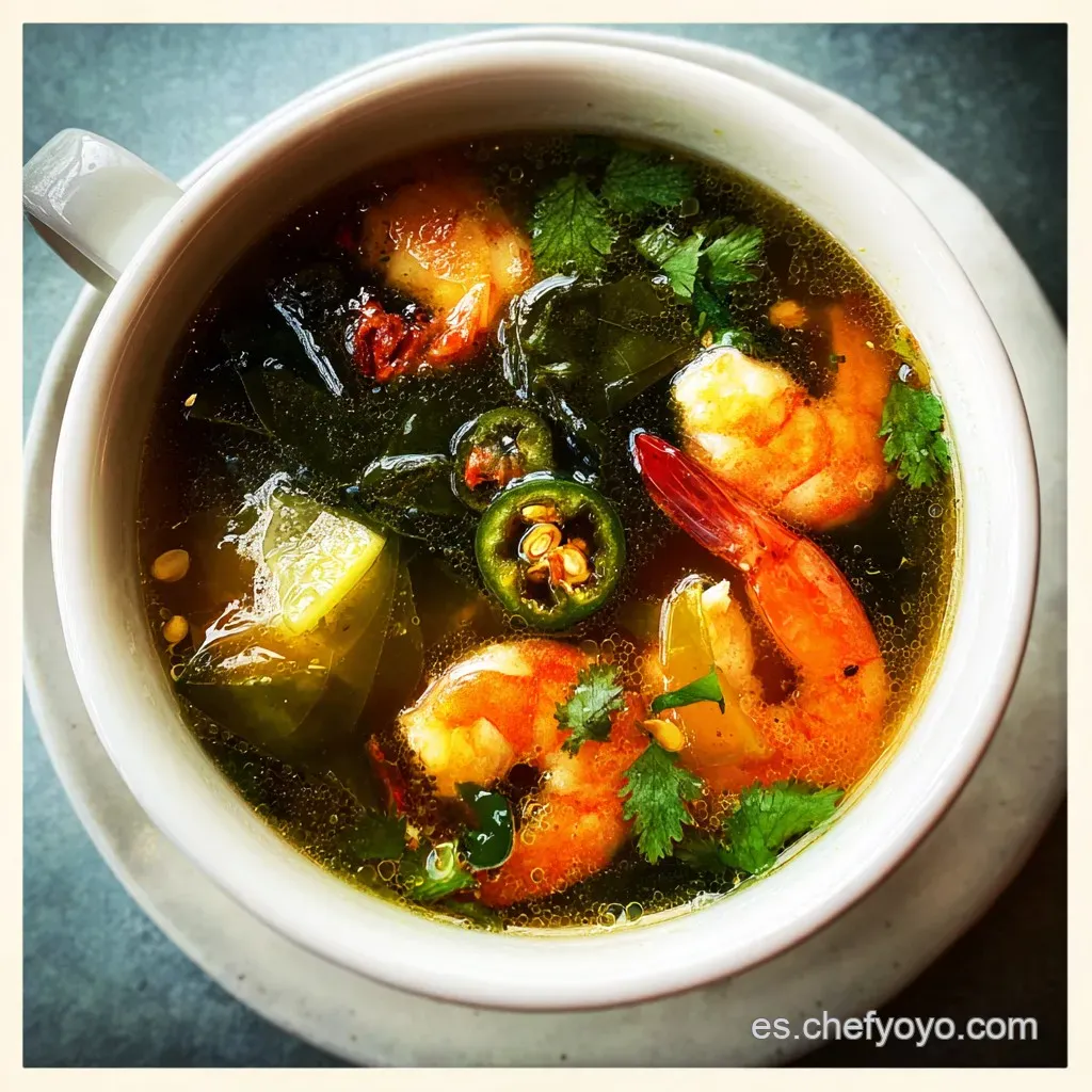 - Flavor/Texture Hook: Caldo profundo con mariscos tiernos